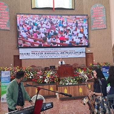 한국에서 온 평균 나이 70세의 워십댄스팀이 부채춤과 전통 무용으로 하나님의 영광을 올려드리는 순간은 정말 감동적이었습니다. 🌸✨또한, 멕시코 자매들의 색소폰과 바이올린 연주는 매우 프로페셔널한 수준이었고, 선교대회를 더욱 풍성하게 만들었습니다. 🎶