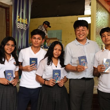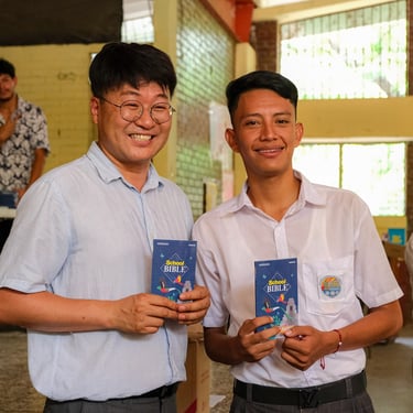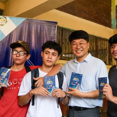 과테말라 수도에서 **4시간 떨어진 싸까빠(Zacapa)**의 세 개 학교를 방문했습니다. 과테말라에서 가장 더운 지역으로 알려진 이곳은 한낮 기온이 42도, 체감온도는 47도에 달합니다. 🔥 정말 숨이 턱 막히는 더위 속에서도 복음을 향한 열정만큼은 식지 않았습니다!