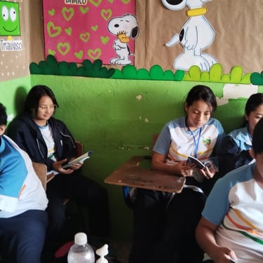 μ€λ λ°©λ¬Έν νκ΅μ μ΄λ¦μ El Γrbol del Conocimientoββμ§μμ λ무βμμ΅λλ€. μ΄λ¦μ²λΌ κ΅μ€ κ³³κ³³μ κ±Έλ¦° μκΈ°μκΈ°ν κ·Έλ¦Όλ€κ³Ό μμ΄λ€μ λ ΈνΈ, μμ°ν, μ± κ°λ°©λ€κΉμ§β¦ μ΄ κ³΅κ°μ λ°°μμ μ΄μ μ΄ νμ§ νΌμ΄ μλ μμ μ² κ°μμ΄μ. ππ